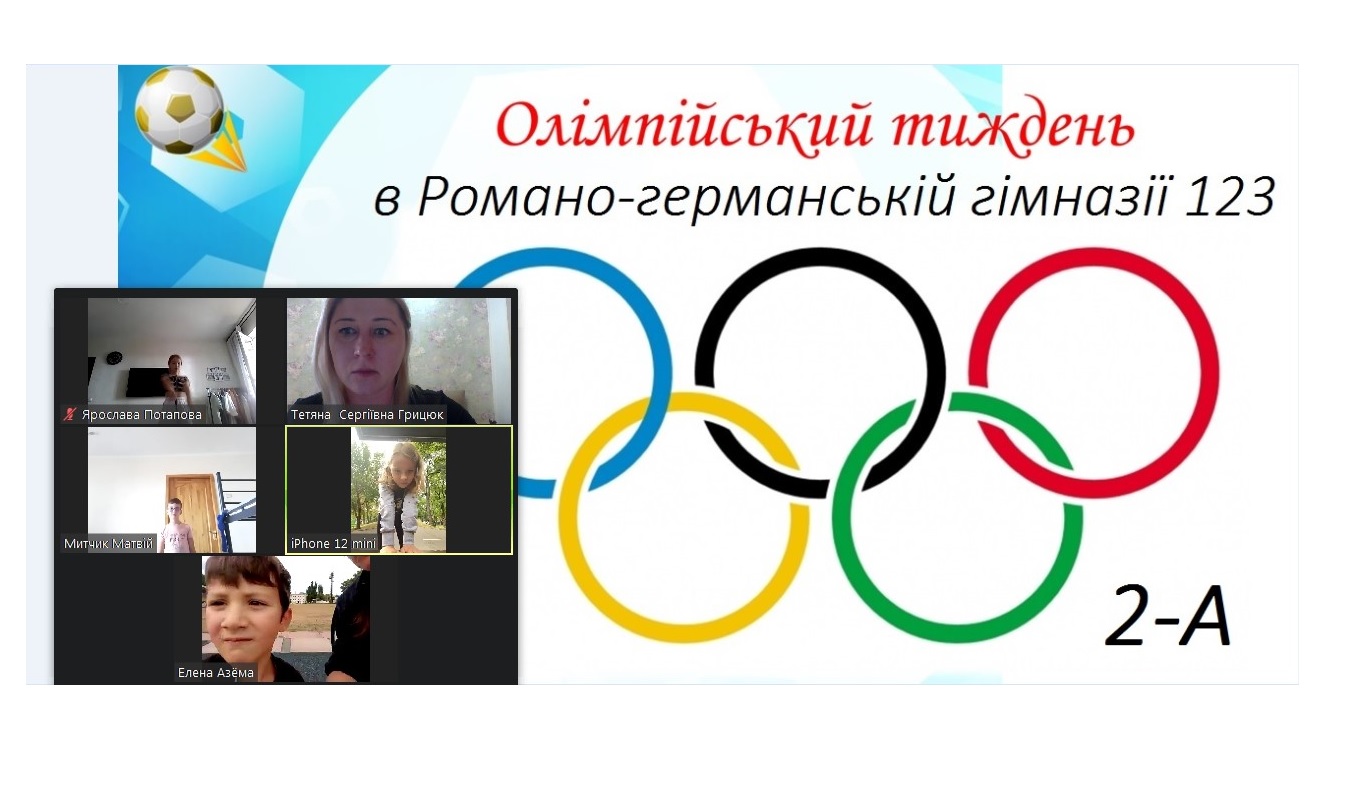 З 11.09 по 18.09 у Романо-германській гімназії №123 було проведено "Олімпійський тиждень" присвячений Дню фізичної культури та спорту. Учні нашої гімназії впродовж тижня змагалися у спритності та витривалості, отримали можливість більше дізнатися про історію Олімпійського руху, його ідеї та принципи. У рамках Олімпійського тижня в нашій гімназії були проведені Олімпійські уроки на тему "Майбутні олімпійці". Був проведений конкурс на кращу вправу ранкової гімнастики. Провели змагання з легкої атлетики, волейболу, футболу "Швидше, вище, сильніше - разом", а також змагалися в метанні гранат.