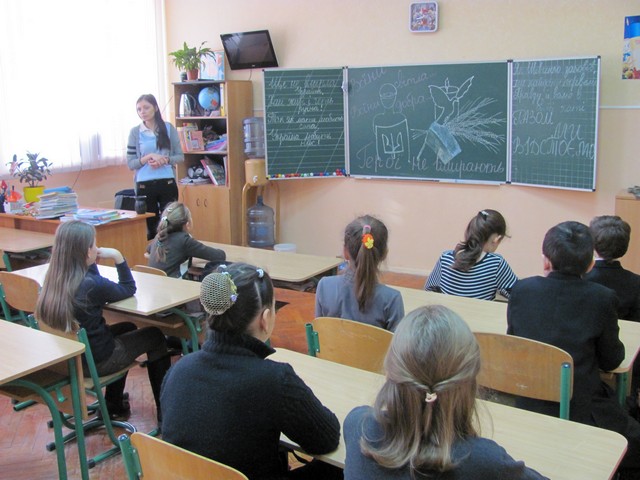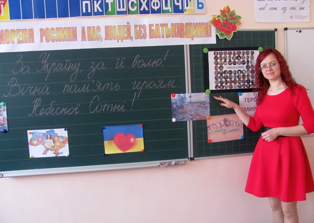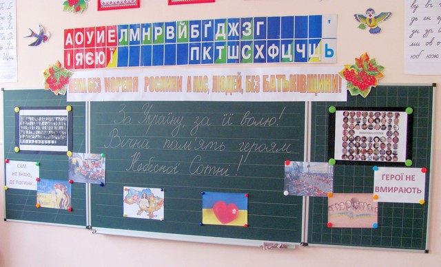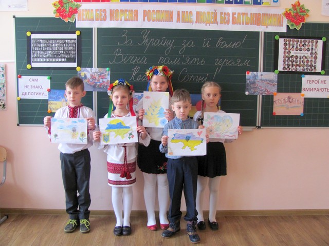 У актовій залі гімназії всі зібралися для того, щоб у скорботі схилити низько голови перед пам’яттю людей різного віку, яких було вбито у мирний, цивілізований час ХХІ століття. Вшанували хвилиною мовчання всіх, хто поклав життя за долю, за волю, за незалежність і свободу нашої єдиної України!