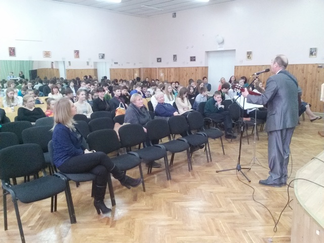 Для учнів і гостей співав відомий бард, композитор, лауреат всеукраїнських та міжнародних конкурсів і фестивалів Ігор Якубовський.