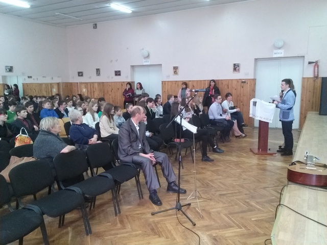 Концерт вели учні 9-Б класу Авер’янова Дар’я і Мельников Леонід.