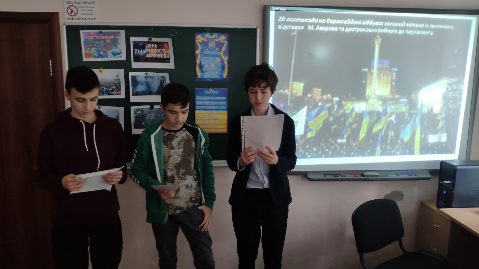 Були проведені години спілкування та тренінги на тему: «Україна — країна Гідності та Свободи». У шкільній бібліотеці був обладнаний куточок пам’яті Революції Гідності.
