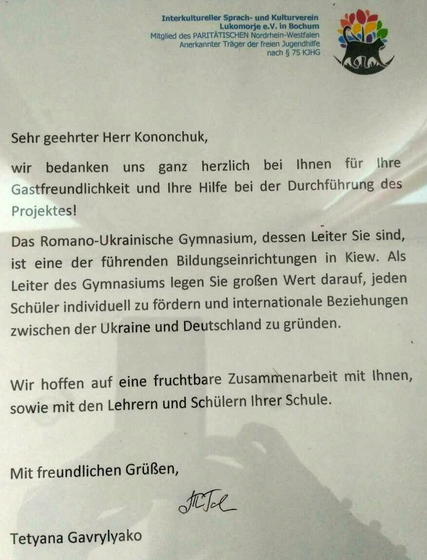 Захоплююча екскурсійна програма до Дортмундського зоопарку, Вальдорфської школи (м. Бохум), Технічного музею, похід до кінотеатру, екскурсії містами та містечками залишила приємні спогади про гостинну країну.