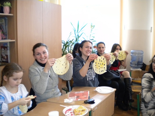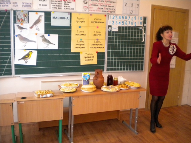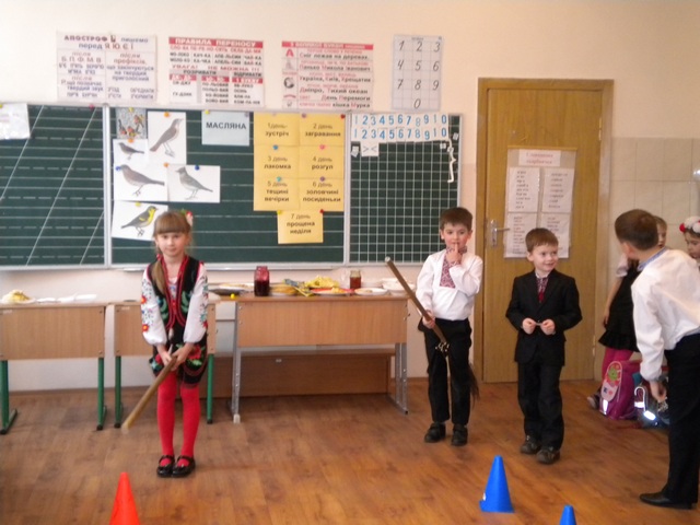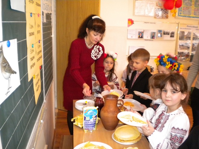 У 1-А класі Романо-германської гімназії №123 відбулося свято Масляної. Діти проводжали зиму і зустрічали весну. Співали народні пісні, розповідали вірші. А яка ж масляна без млинців? Батьки не пошкодували свого часу і напекли млинці на будь якій смак. А після смачних млинців діти поділились на команди і змагалися у спритності, влучності, кмітливості. Перемогла дружба!