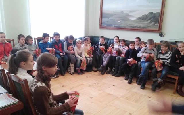 23 грудня 2016 року у Романо-германській гімназії №123 більше ста дітей пільгових категорій та дітей, батьки яких загинули в зоні АТО або є військовослужбовцями, одержали солодкі вітання – подарунки.
