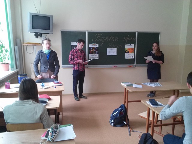 - Урок правознавства «Право на безпечну працю в Українї» у 10-А класі до Всесвітнього Дня охорони праці, бесіди у 1-11 класах