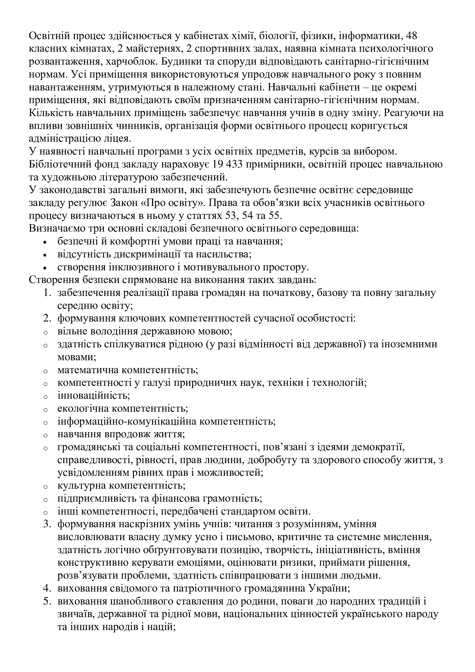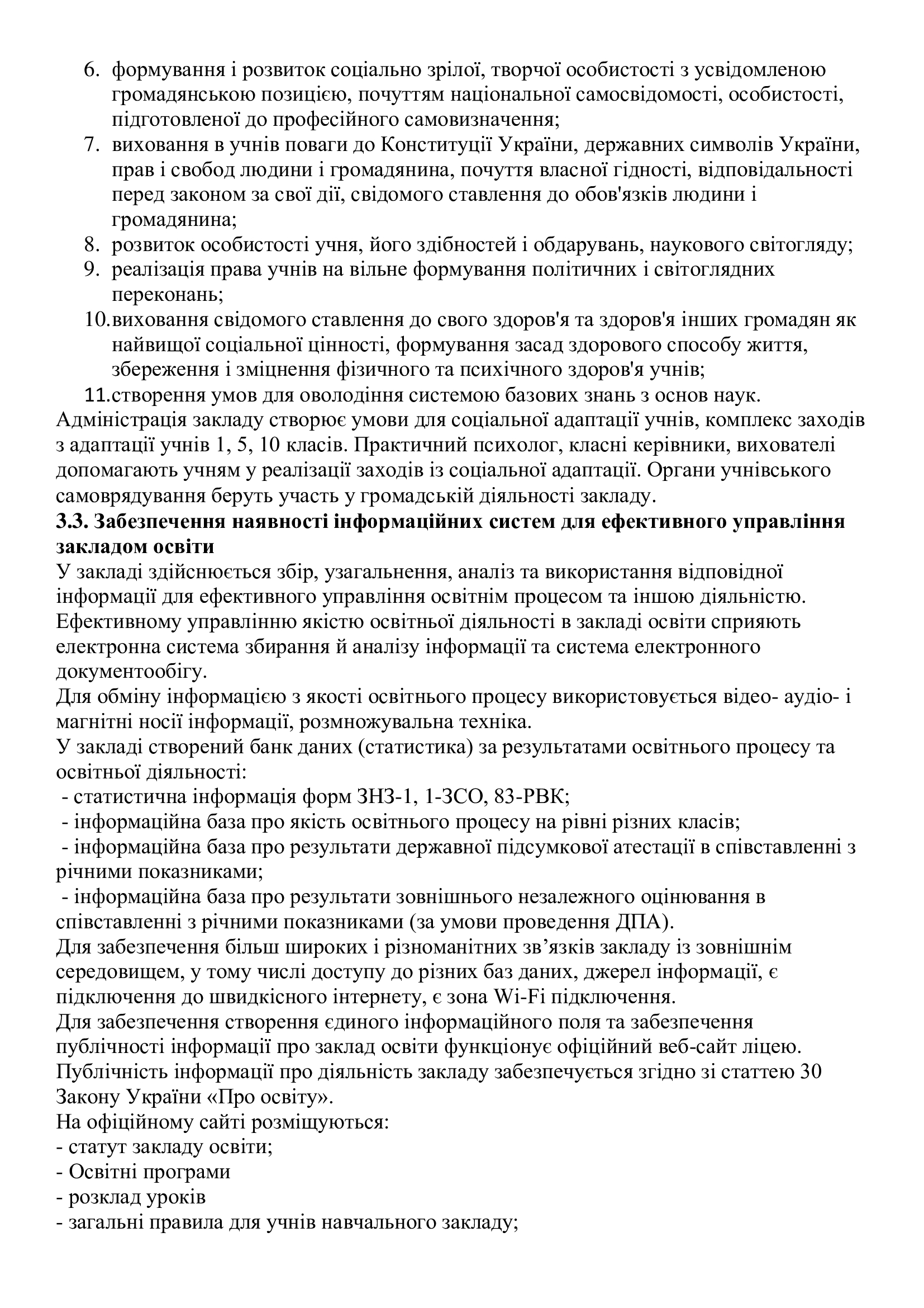 Звітність ліцею