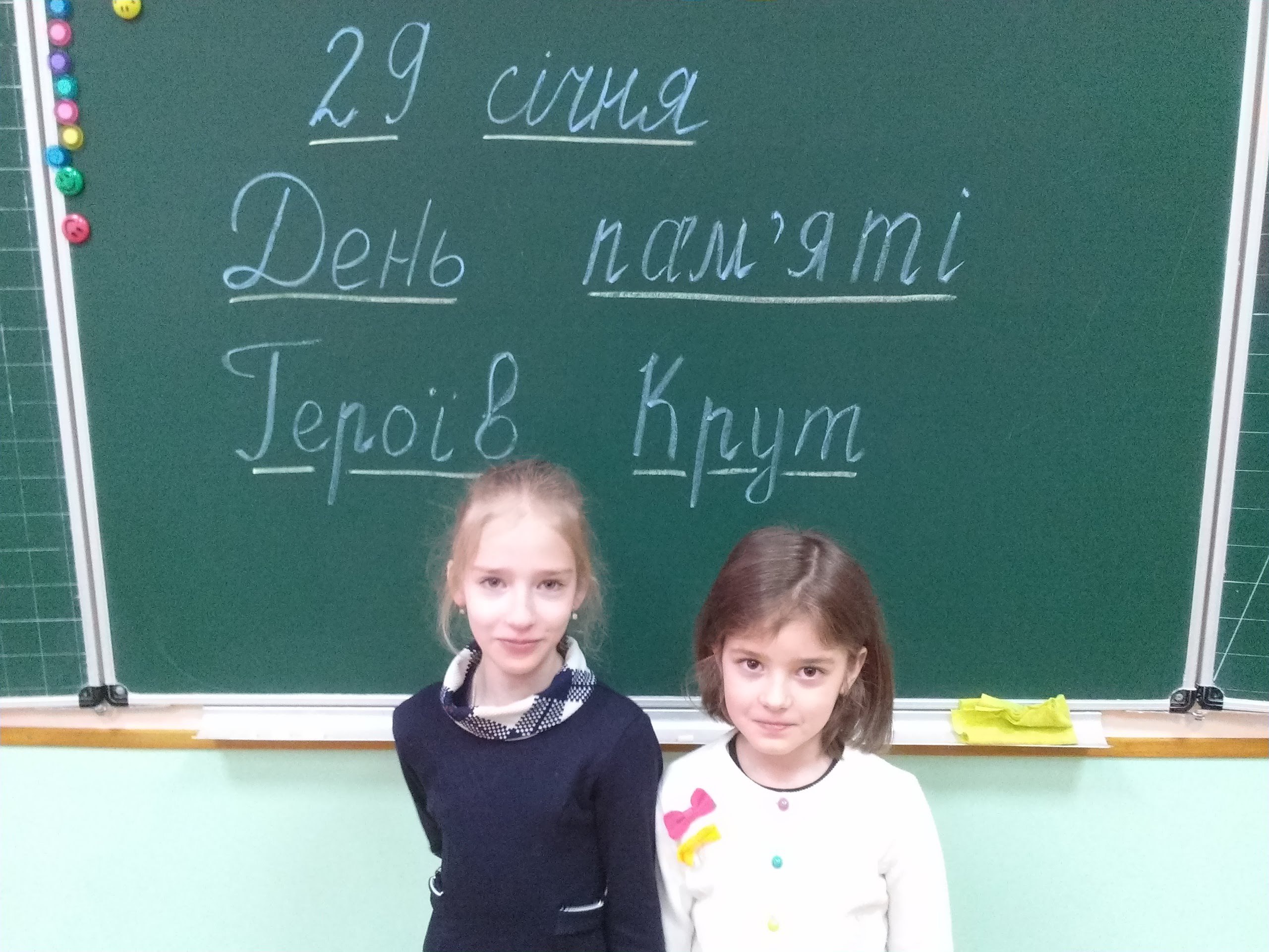 На виховних годинах учні та вчителі 1-11 класів хвилиною мовчання вшанували українців, загиблих в тій нерівній битві з окупантами, дивилися документальні стрічки та брали участь у спортивних змаганнях «Козацькому роду нема переводу!