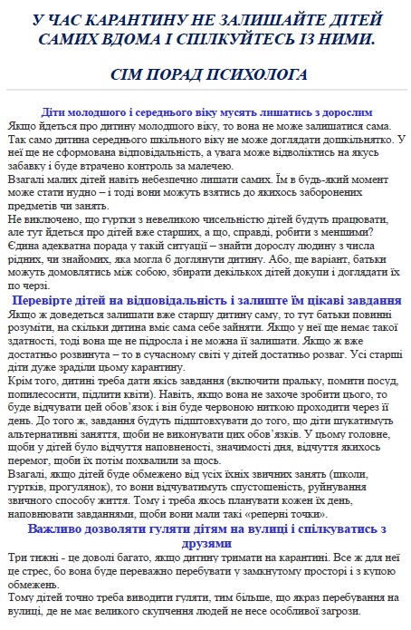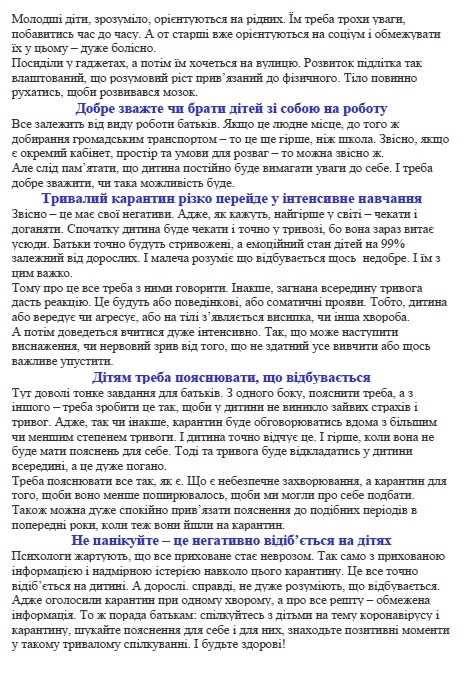 Поради батькам під час карантину