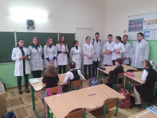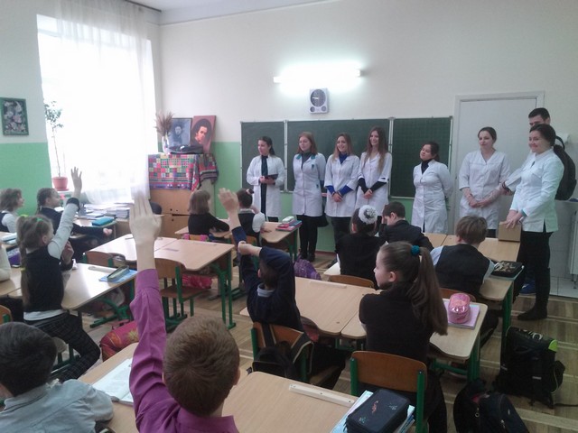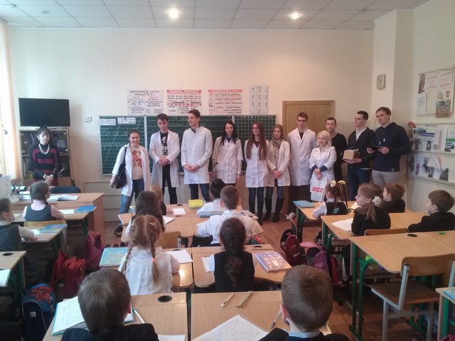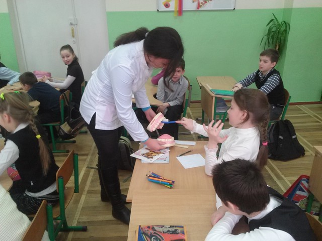 17.03.2016 р. у Романо-германській гімназії №123 студенти 3-го курсу кафедри стоматології Університету медицини ім. О.О.Богомольця провели лекції на тему: «Гігієна порожнини рота» серед дітей 1-4 класів. У цікавій формі міні вистави та вікторини розповіли про важливість, методи та засоби гігієни ротової порожнини. Школярі отримали не тільки важливу інформацію але і невеликі пам’ятки та сувеніри, а студенти здобули корисний досвід спілкування з майбутніми своїми пацієнтами.