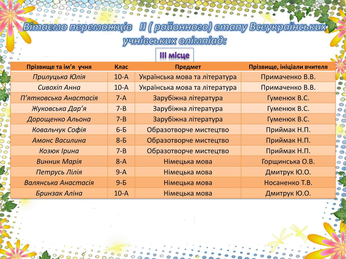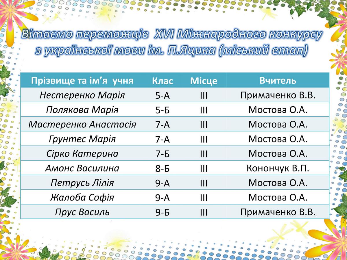 Дякуємо за участь та бажаємо і надалі перемагати!
