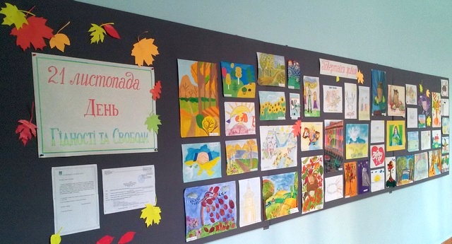 21 листопада 2014 року у Романо-германській гімназії відбулась виставка малюнків та листівок «Повертайся живим!»