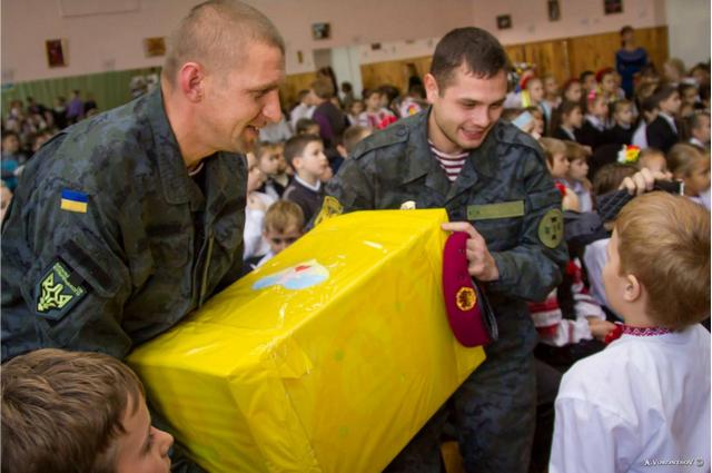 Вихованці гімназії не тільки подарували бійцям власноруч зроблені подарунки та теплі речи, а й читали для них вірші, вигукували «Слава Україні!» та дякували Героям.